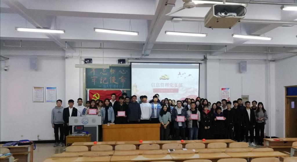 为在“不忘初心、牢记使命”主题教育中进一步做好“开门抓教育”,促进党团共建,英国上市官网365信息管理党支部于2019年11月14日在逸夫楼B303教室举办“不忘初心,牢记使命”主题教育知识竞赛总决赛。信息管理党支部成员及120余名同学观看本次比赛。