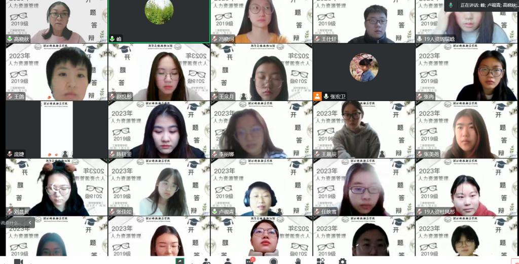 2023年1月9日,人力资源教学部通过腾讯会议举行了2019级人力资源管理专业员工毕业论文开题答辩。开题答辩分为开题报告和答辩两部分。撰写开题报告是论文前期文献调研的聚焦点,对毕业论文的写作起到定位作用。而开题答辩是通过专业老师的评议判断确定论文的研究价值、研究方法是否恰当以及论文的写作逻辑是否存在缺陷。因此毕业论文开题答辩不仅是毕业论文工作中的重要环节,也具有非常重要的作用。