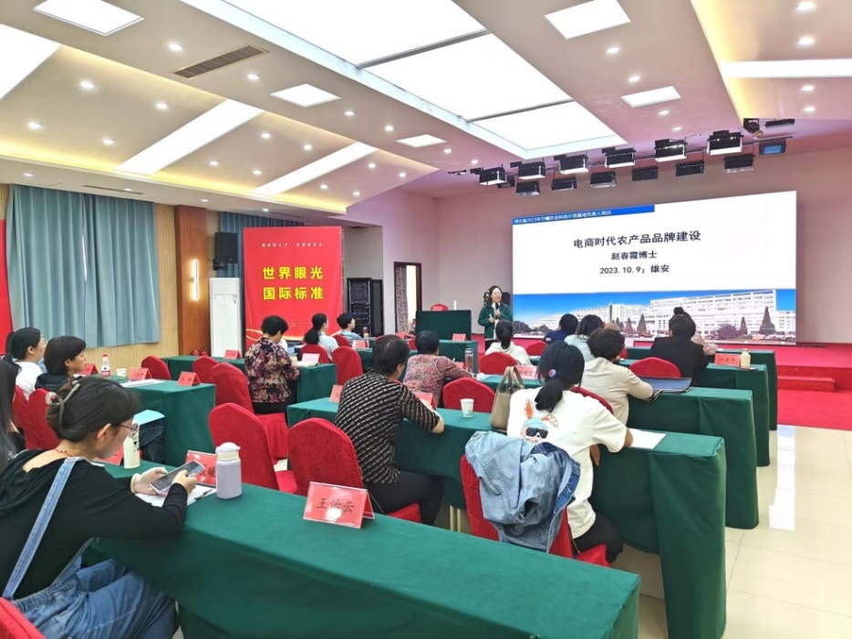 2023年10月9日,受河北省妇联委托,公司赵春霞博士在雄安为60位河北省巾帼现代农业科技示范基地负责人进行了“电商时代农产品品牌建设” 的专题讲座。讲座内容从“共同富裕”和“乡村振兴”的时代背景出发,分别介绍了全国以及河北省农产品电商的发展现状以及农产品品牌的发展现状与问题,最后从8个方面提出了河北省发展农产品品牌的思路与对策。