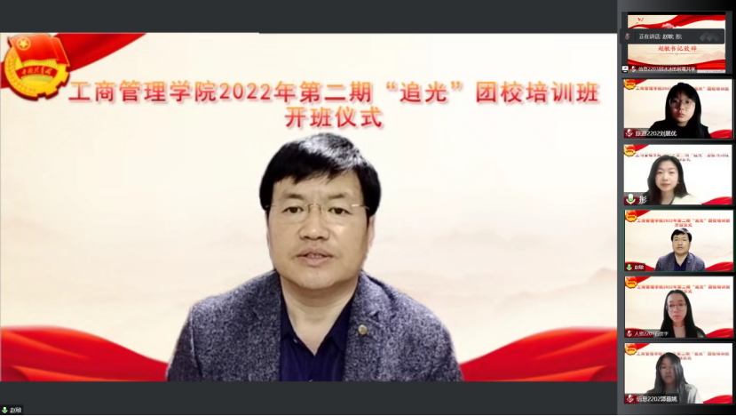 2022年10月27日,英国上市官网365团员相聚在云端举办2022年第二期“追光”团校培训班开班仪式暨第一次课程培训,公司党委书记、团委书记及团校学员参加开班仪式。