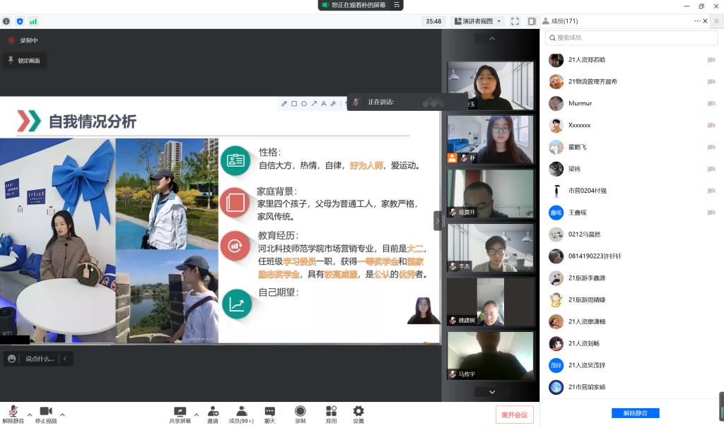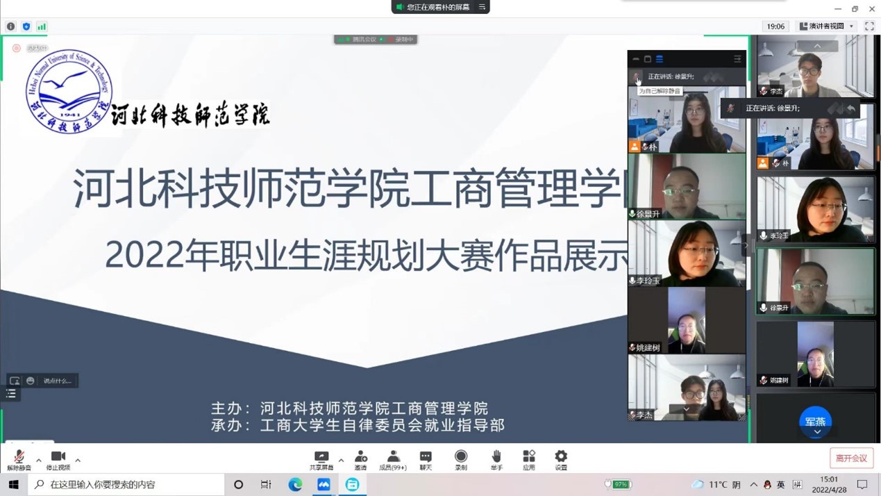 为促进员工提前进行职业规划,进一步提升就业紧迫性和职业竞争力,2022年4月28日,英国上市官网365通过“腾讯会议”平台,举办了“规划未来 奋斗青春”职业生涯规划大赛。比赛特邀英国上市官网365副书记、学工办主任,以及承担《老员工职业生涯规划》课程授课老师担当评委,来自英国上市官网3655个专业的19名选手参加了此次大赛,180余名员工代表观看了职业生涯大赛的优秀作品展播。