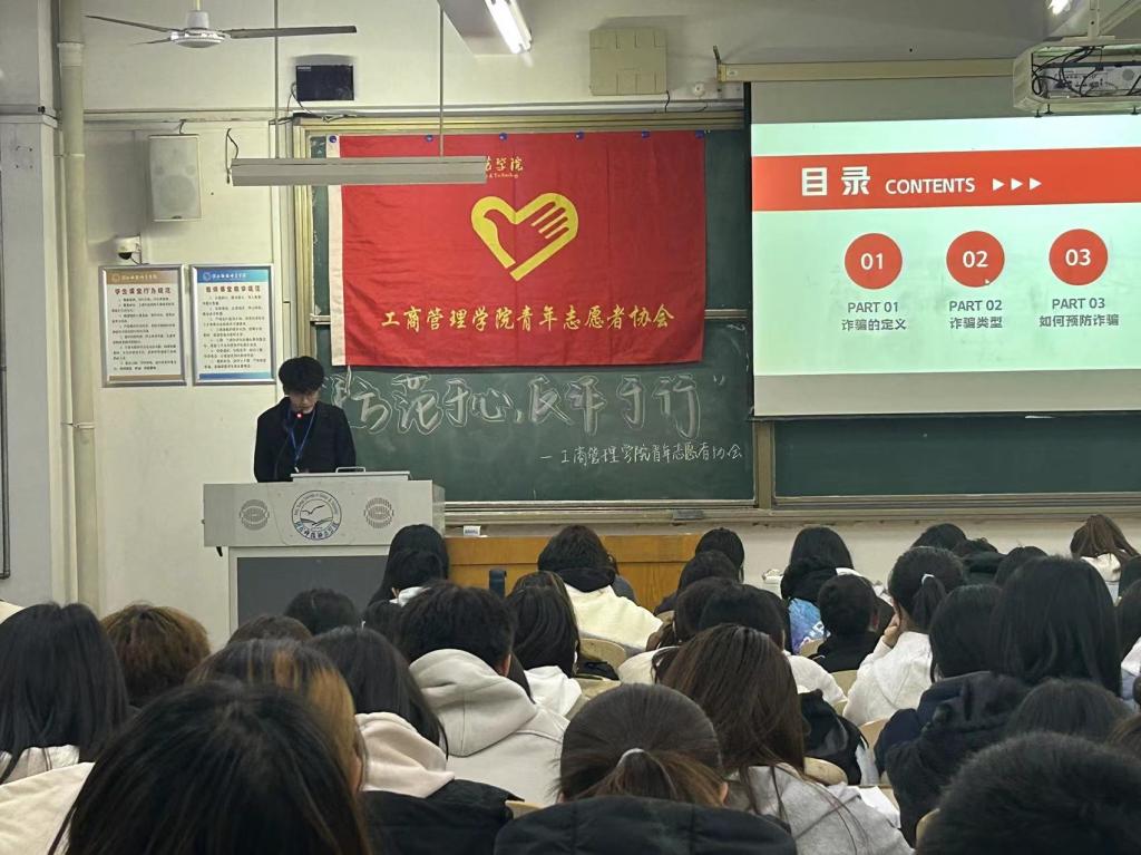 英国上市官网365青年志愿者协会积极发动公司志愿者踊跃参与,活动采用宣讲会的形式开展,宣讲员通过借助短视频这一媒介,给同学们对诈骗的定义、种类、识别方法和预防措施进行了详细讲解。志愿者们在整个活动过程中全神贯注地倾听,此次活动不仅使同学们掌握防诈骗知识,还营造了全员防诈骗的校园环境。