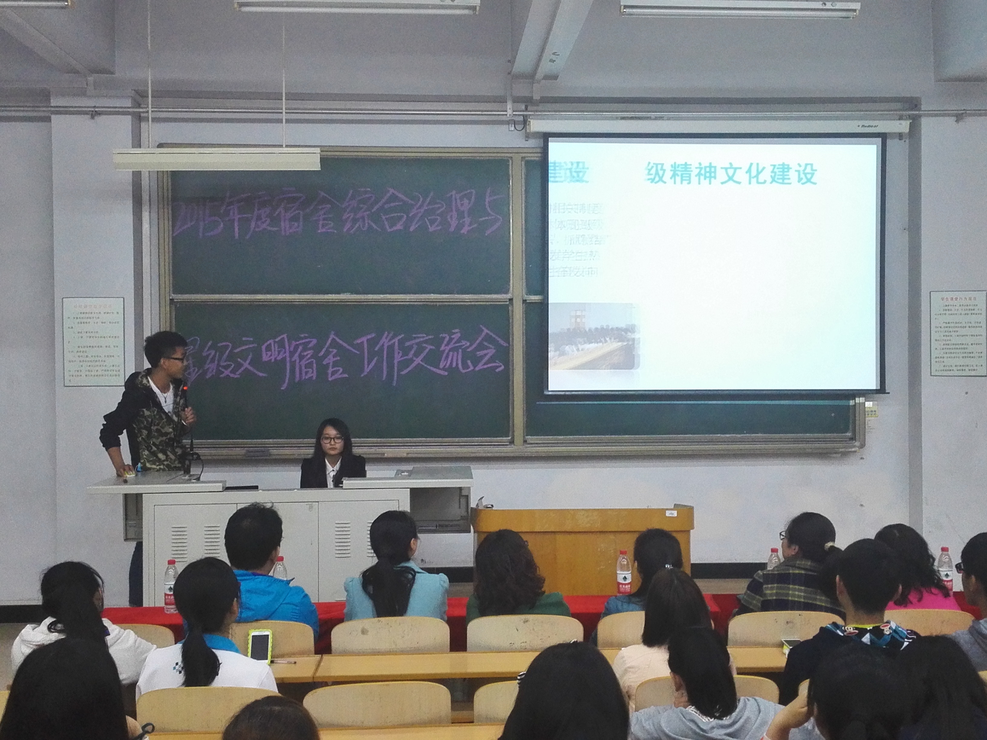 2016年4月22日晚7:00,英国上市官网365于B-501举办员工公寓综合治理与星级文明宿舍工作交流会。副书记、副经理李强华教授携学工办全体老师,公司所有班级班长、生活委员及宿舍长出席了本次交流会。