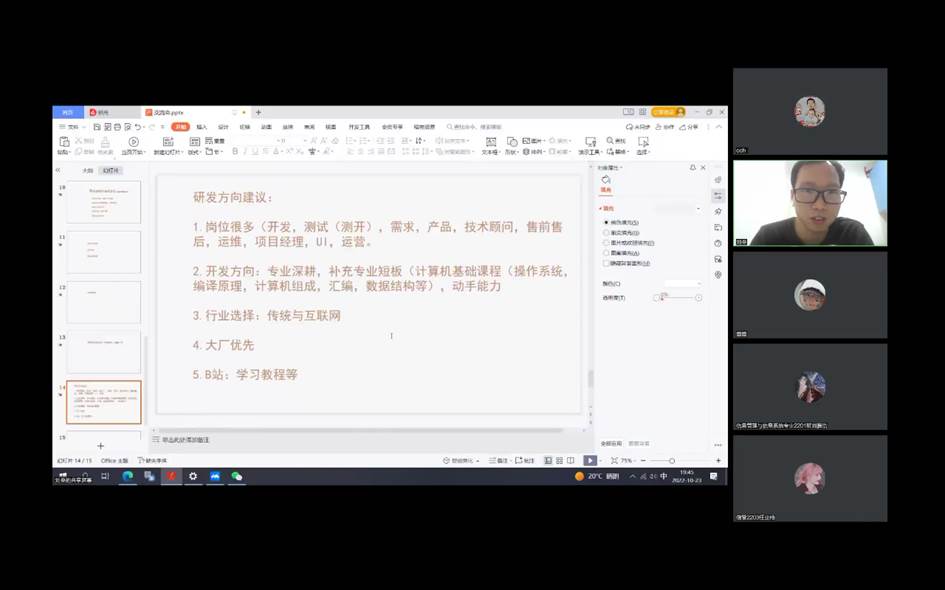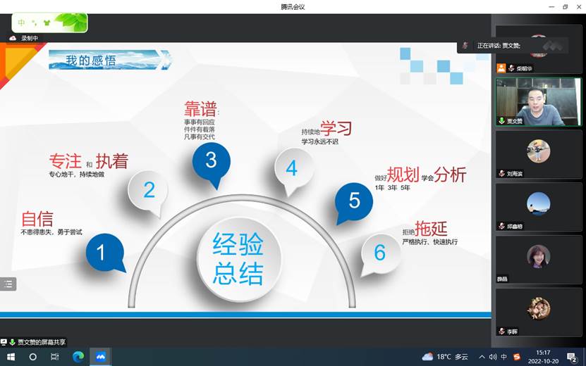 优秀员工兰建龙,结合自身的学习经历和工作行业背景,探讨了当前社会经济变革现状,点出了当前信息行业发展的新契机,并给学弟学妹的职业规划和个人素质培养提出了热忱、中肯的建议。优秀员工孙立强,从员工时代开始讲述自己的学习、奋进到最后成功的经历,深入浅出的讲述了从一个职场小白到职场精英的奋斗历程,为在校生道出了成功的秘籍——拼搏拼搏再拼搏。优秀员工魏秋实,讲述了自己三次考研的经历、读博的感悟,情真意切、感人至深,为在校生讲出了成功的真谛——坚持坚持再坚持。优秀员工贾文赞,讲述了自己从实习到入职入行再到开拓创业的经历,重点分享了自己的发展道路上的挫折及其带来的成长,为在校生点出了成功的阶梯——实干实干再实干。优秀员工刘垒,讲述了自己对于信息系统开发的见解,剖析了性格与岗位选择的关系,真刀实枪,句句发自肺腑,为在校生说出了成功的道路——努力努力再努力。还有余飞、陈建强等优秀员工,也从自己的工作、学习、创业等方面讲述了个人的经历和感悟,为信息管理与信息系统专业的在校生呈现了一系列精彩的讲座。