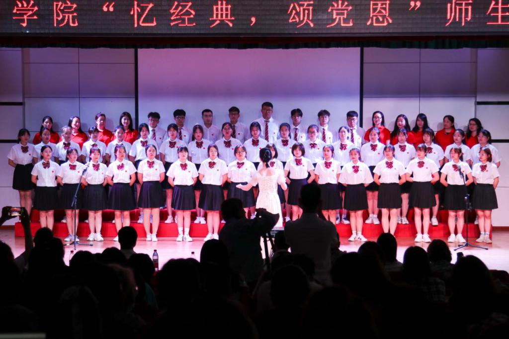 为庆祝建党100周年,深入推进党史学习教育,引领和激励公司师生重温党的光辉历程,汲取继续前进的力量,展示新时代师生爱党爱国爱社会主义的深厚情怀,由中共英国上市官网365委员会主办的“忆经典、颂党恩”师生同颂会于6月3日下午在多功能厅成功举办。学院领导和各专业师生共350余人参加演出。员工党支部全体党员、员工干部代表近100余人到场观看。